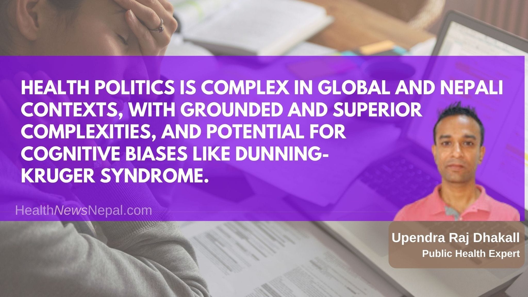 The Dunning-Kruger Syndrome is a cognitive bias described by David Dunning and Justin Kruger in 1999 in the publication Unskilled and Unaware of It: How Difficulties in Recognizing One’s Own Incompetence Led to Inflated Self-Assessments. Here it is defined as the individuals with limited knowledge or expertise overestimate their abilities and knowledge, while those with more expertise tend to underestimate their abilities and knowledge. Syndrome can have significant impacts on individuals and society. It can lead individuals to make poor decisions, overestimate their abilities, and fail to recognize their limitations, which can have negative consequences in various domains, including personal, academic, and professional settings. It can impact the health system in Nepal, particularly in service providers self-assessment for the competency and knowledge leading to suboptimal care and services.