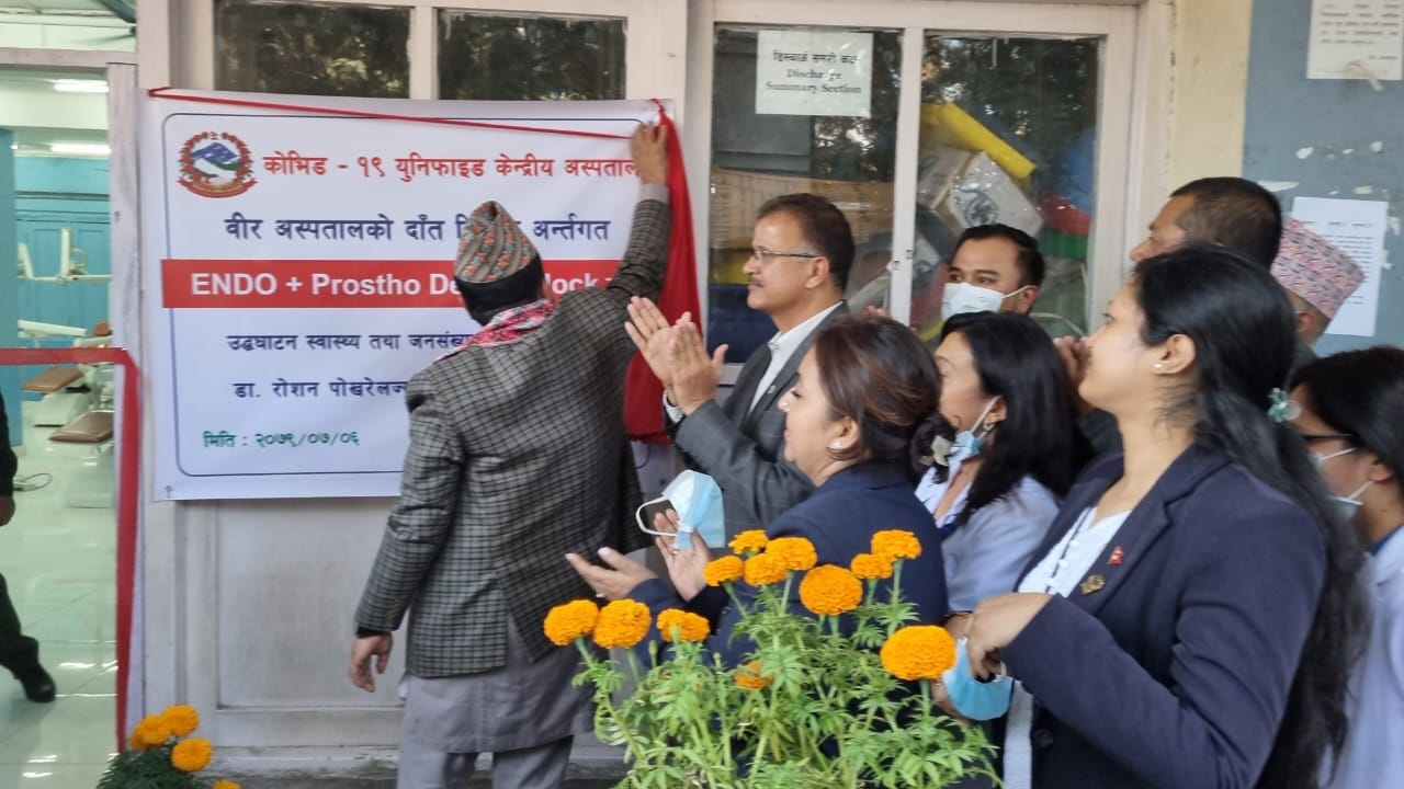 दन्त सेवा बिस्तार सँगै प्याथाेलाेजी विभाग अन्तर्गत फ्लोसाइटोमेट्री र आइ. एच. सी सेवाको स्वास्थ्य सचिब डा. रोसन पोखरेलले उद्घाटन गरेको हो।