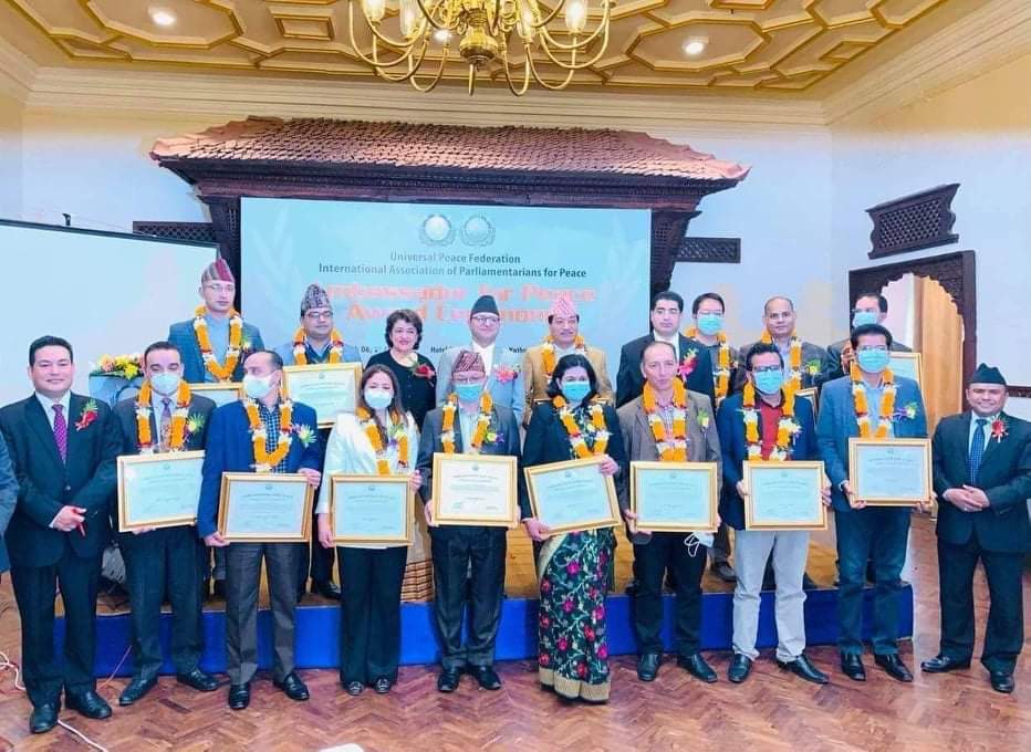 यूनिभर्सल पीस फेडेरेसनले हिजो एक कार्यक्रमका बिच कोभिड महामारीबाट अरुलाई बचाउन आफ्नो ज्यान जोखिममा राखेर काम गरेका प्रतिनिधि स्वास्थ्यकर्मी तथा पत्रकारहरूलाई सम्मान गरेको छ ।