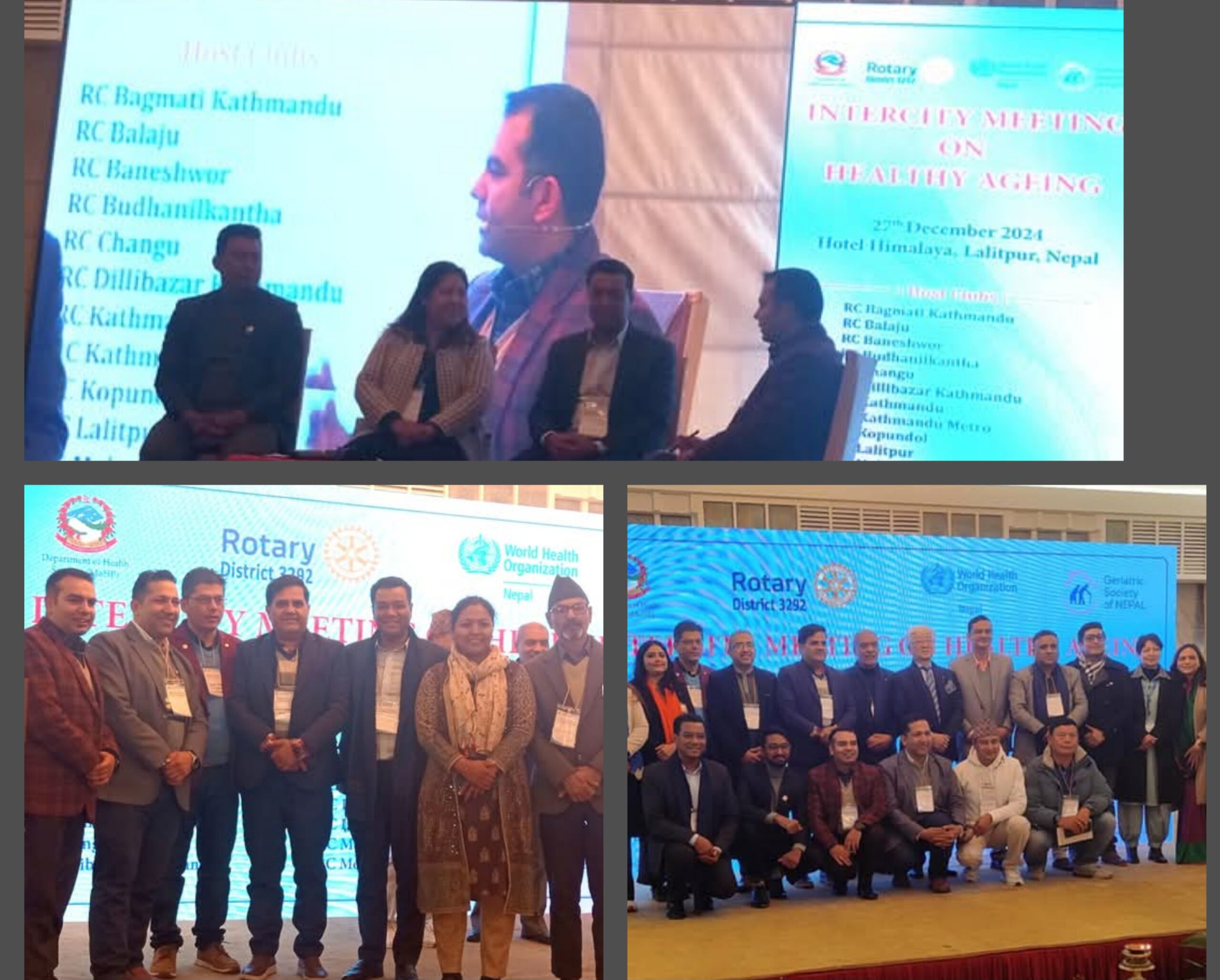 रोटरी डिस्ट्रिक्ट ३२९२ नेपालले स्वास्थ्य विभाग, विश्व स्वास्थ्य संगठन (डब्ल्यूएचओ) र जेरियाट्रिक सोसाइटी अफ नेपालको सहकार्यमा स्वास्थ्यकर बुढ्यौलीबारे अन्तर क्लव बैठक आयोजना गरिएको हो।