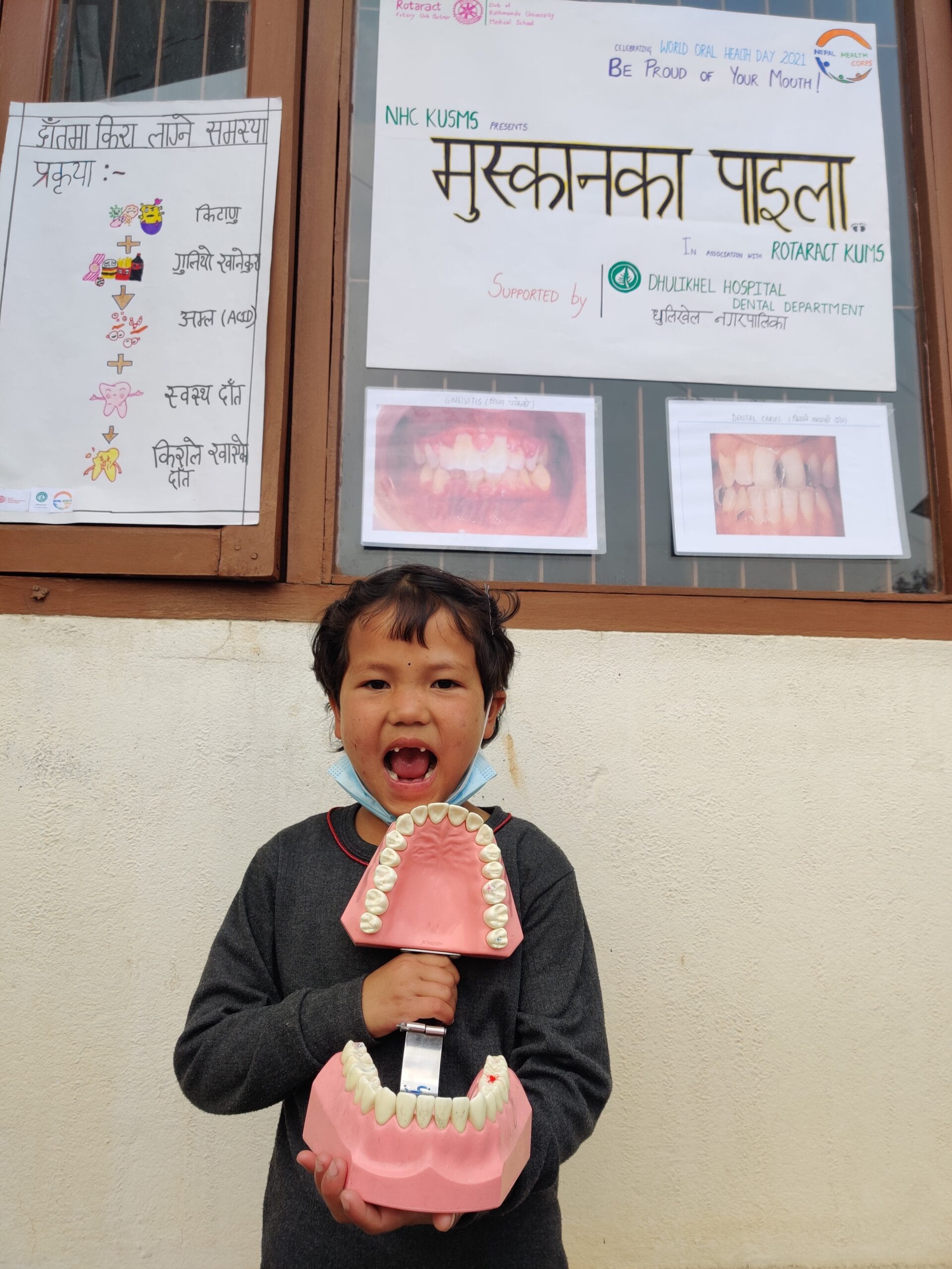 चैत्र ०८,२०७७ ( मार्च २०,२०२१) – विश्व मुख स्वास्थ्य दिवस “आफ्नो मुखको गर्व गर्नुस” भन्ने मुल नाराका साथ विश्वभर मुख स्वास्थ्यको जनचेतनामूलक कार्यक्रमहरु भए सँगै यस काठमाण्डौँ विश्वविद्यालय , धुलिखेल अस्पताल दन्त विभाग द्धारा सो दिवसको अवसरमा विभिन्न स्थानहरुमा जनचेलनामुलक कार्यक्रम, दन्त परिक्षण र प्रारम्भिक उपचार गर्ने कायहरु सञ्चालन गरिएको थियो ।